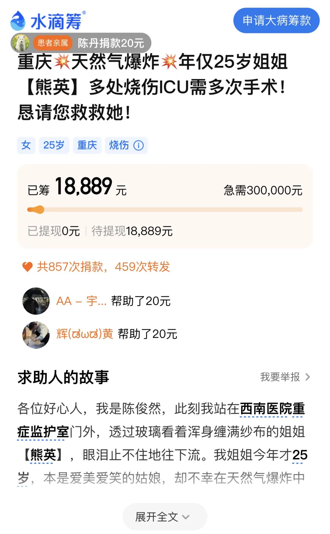 可8月20日那个寻常的傍晚,一声巨响“燃气爆炸”,不仅撕碎了平静,更把这个年轻姑娘和她本就脆弱的家,拖进了难以想象的寒冬。