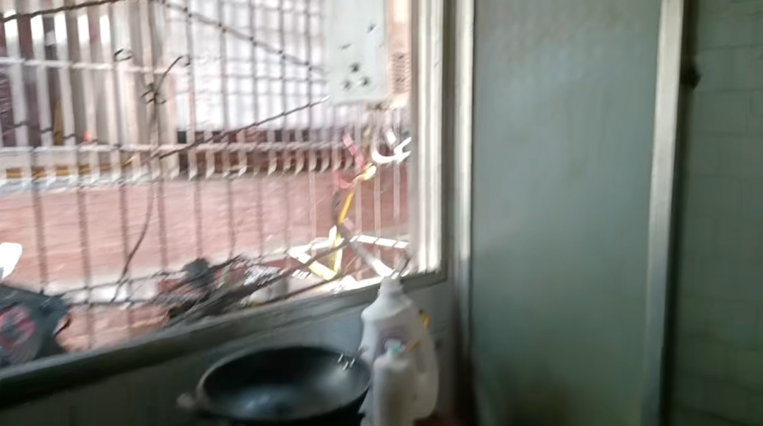 ▲卫生间就在厨房边,是简单隔出来的,气表的大概位置就在洗衣液瓶附近