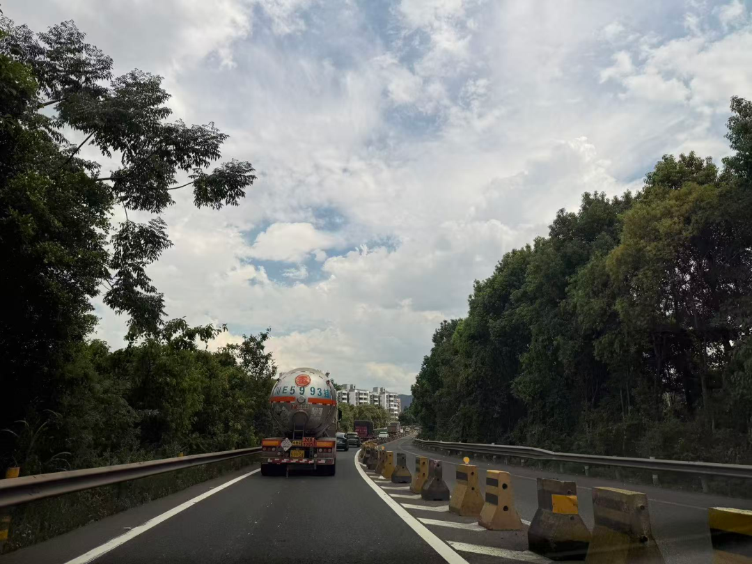 上图:从协睦上道回梁平,外环高速转换至渝长复线/老渝长高速的匝道为单道,货车很多,时常需缓行通过。