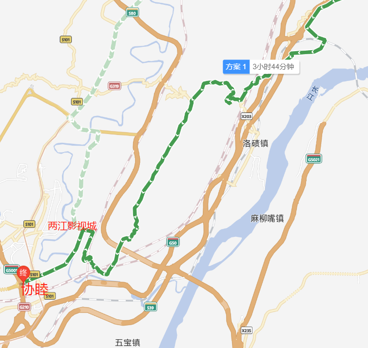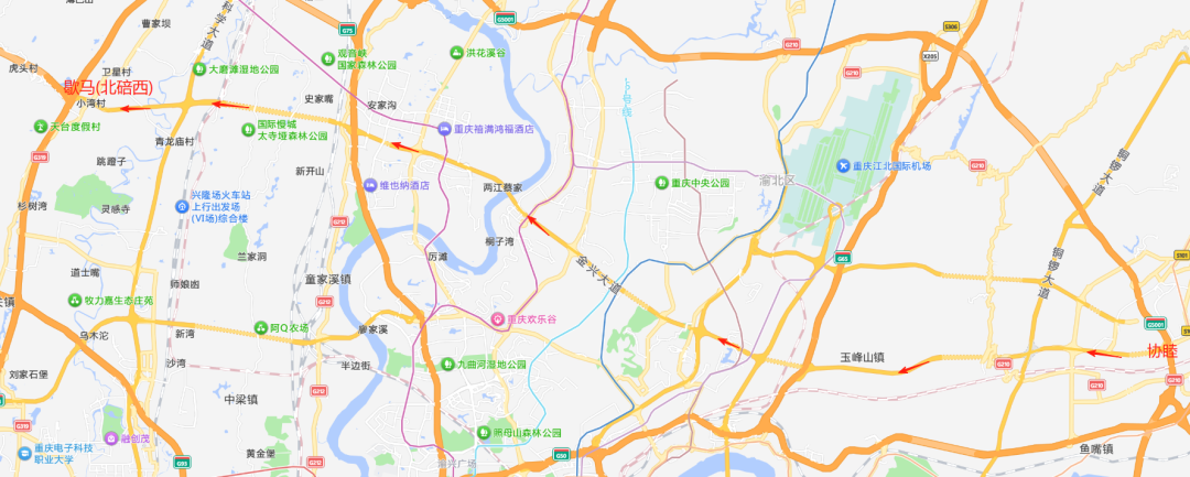 点下图滑屏放大看:梁平至七桥、垫江全境、长寿部分段为四车道。也可再经以下319国道翻张关山线路前往,可再省半小时进城,全程0元。导航:两江影视城,选避免收费或不走高速。全程3小时45分左右,有时间的老司机可以怀旧驾驶一次。