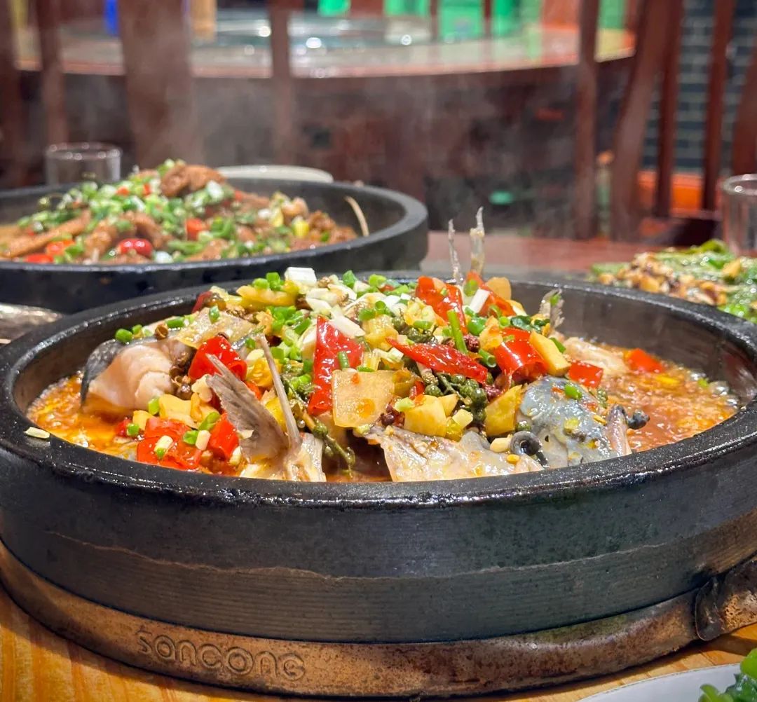 - 石家酸汤鲶鱼、石家泼辣鲶鱼、石家麻竹烧鸡公、石家油炸酸渣肉、石家油炸酸渣肉