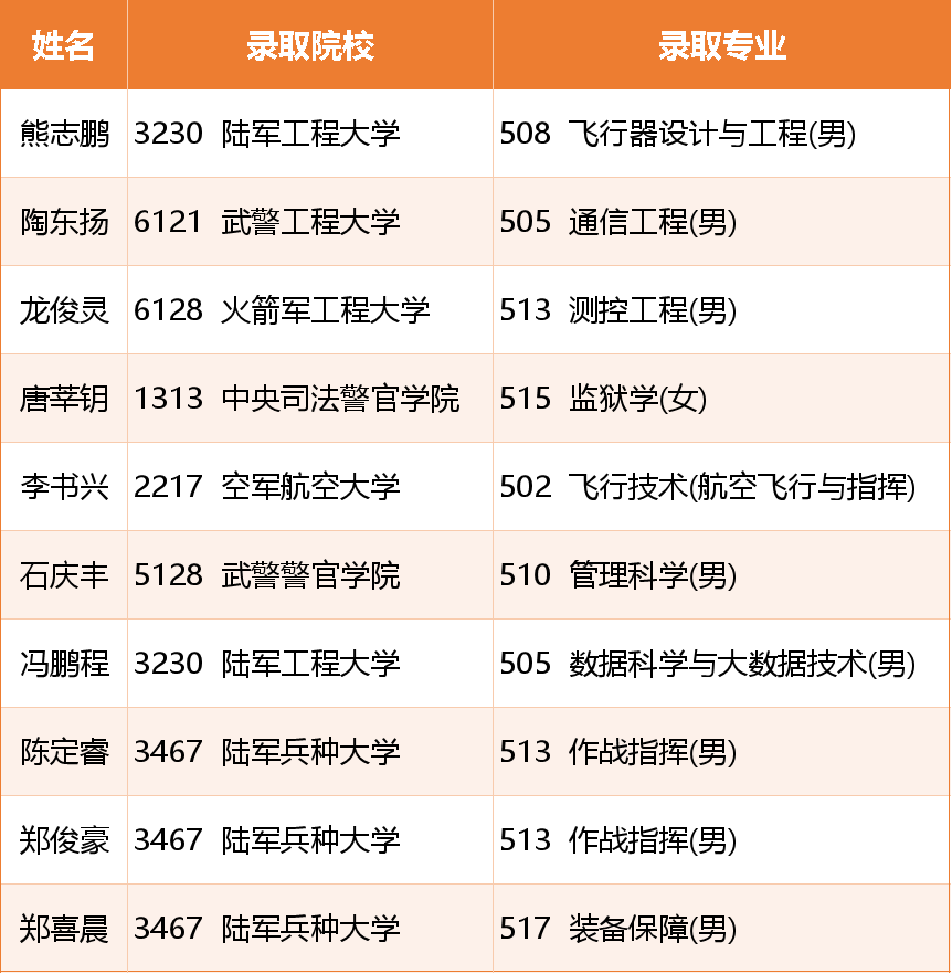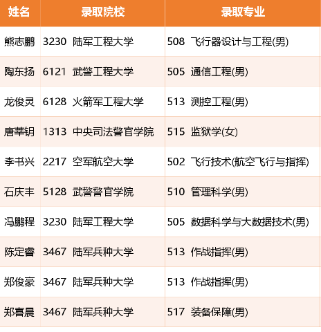 10名同学被录取军警类院校录取