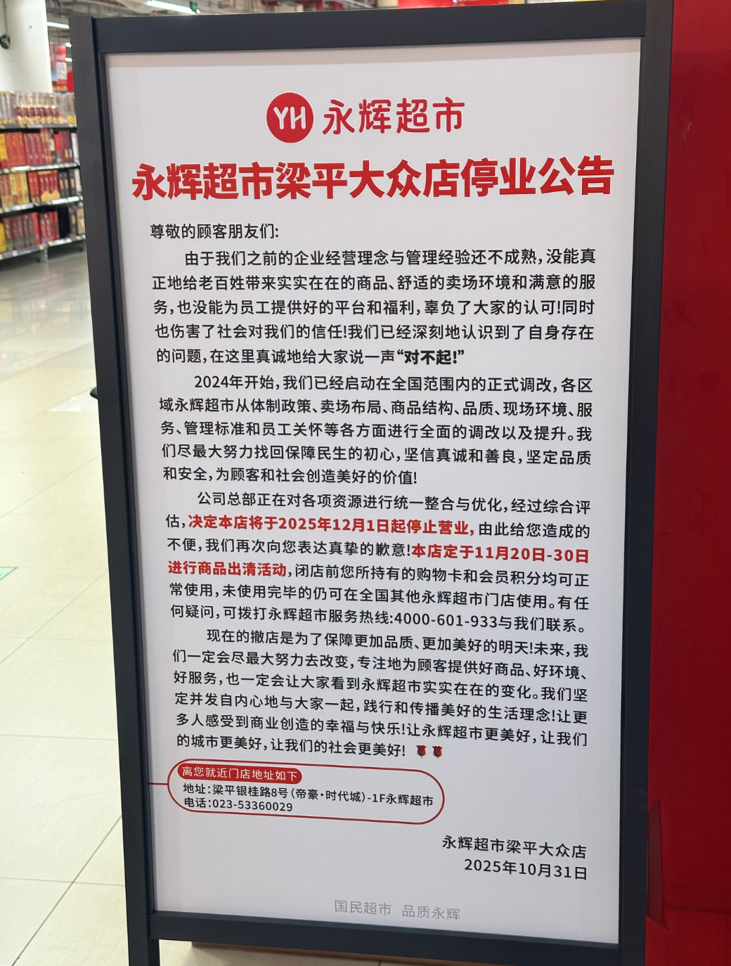 永辉超市大众店陪伴了梁平人这么多年,居然都要停业了