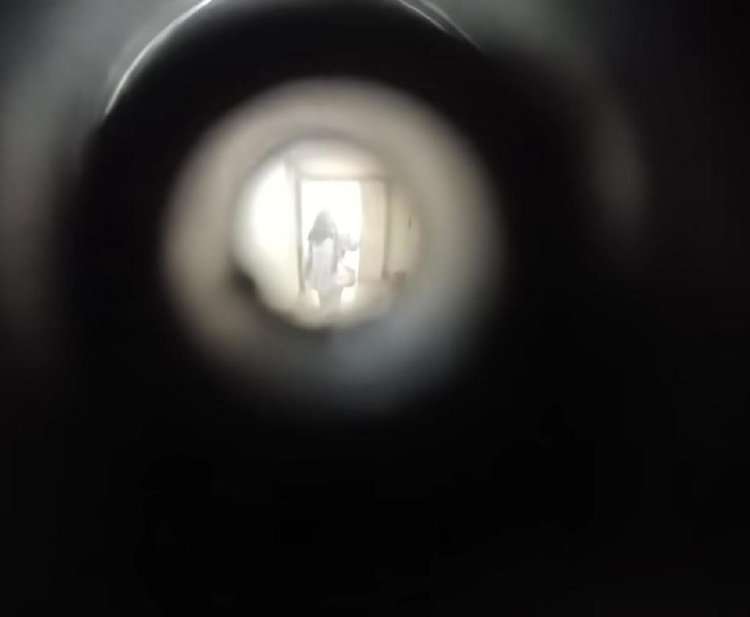 被害人生前从家门上的“猫眼”拍到的凶手影像。受访者供图