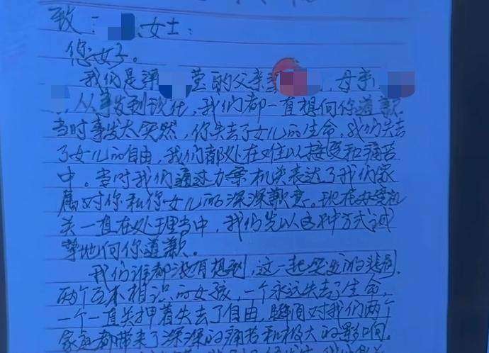 被告人父母提交的道歉信。受访者供图