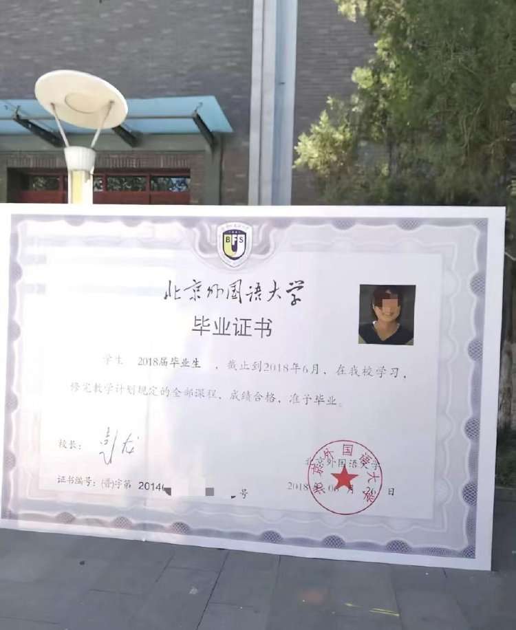 被害人的北京外国语大学毕业证书。受访者供图