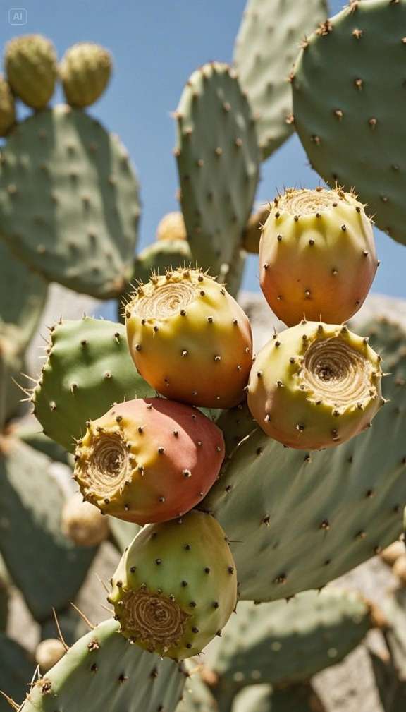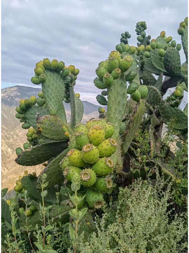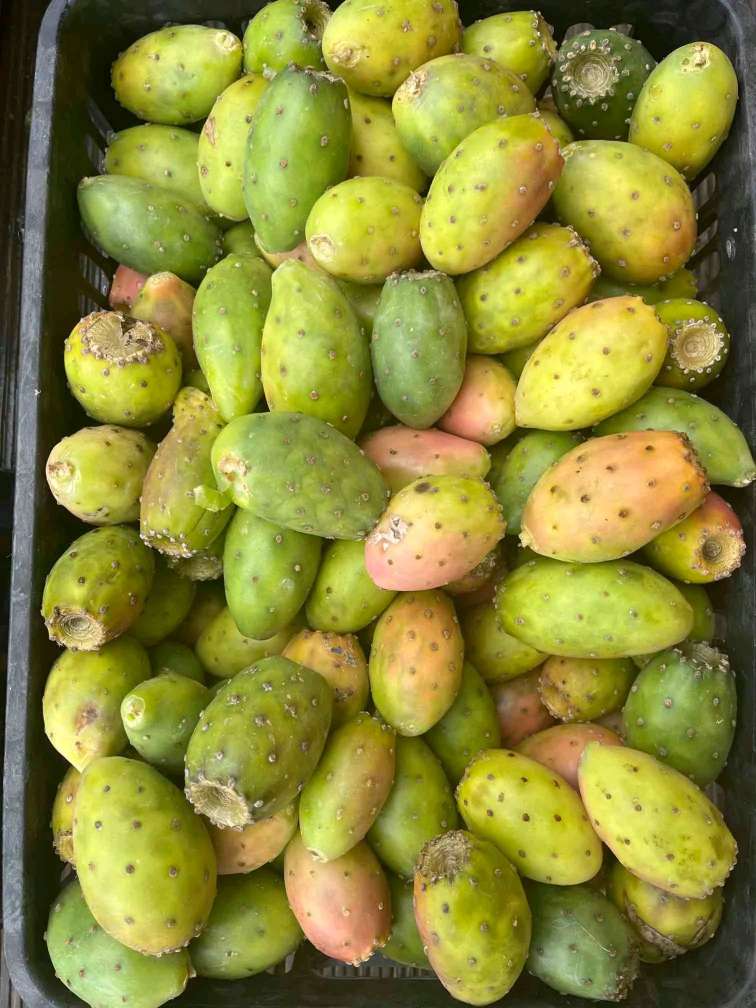 仙人掌果的外形类似火龙果,大小如李子,表面有绿色的小刺,成熟后会变成紫红色。果肉黏稠,呈白色或红色还有黄色的,里面嵌有黑色的小种子。口感上,它酸甜多汁,爽口宜人,有些人觉得味道像火龙果混合了话梅的风味,很多地方把果子称为“”仙桃”