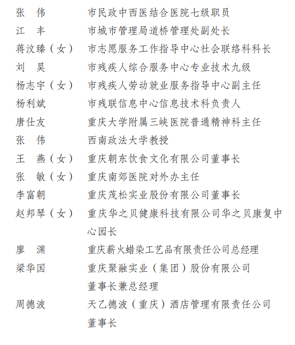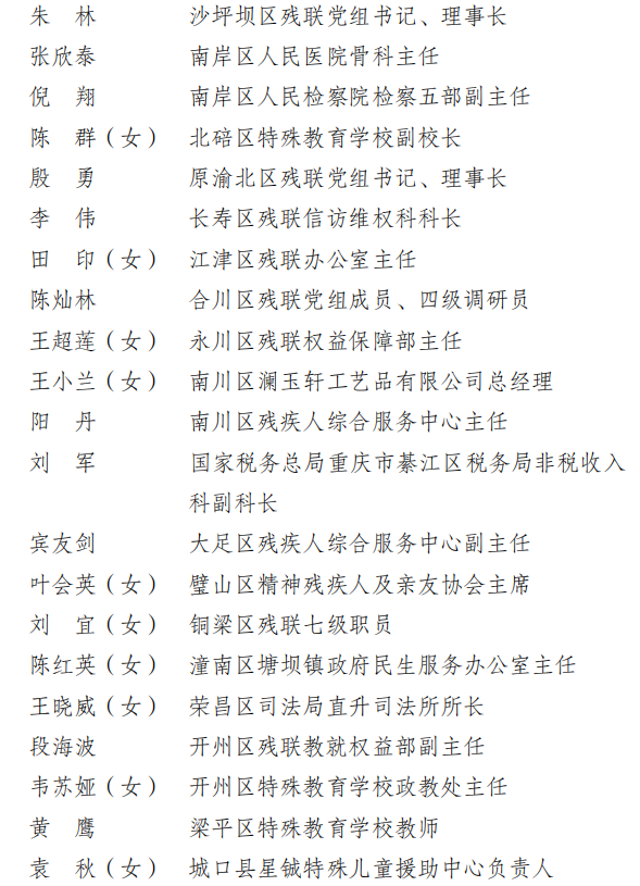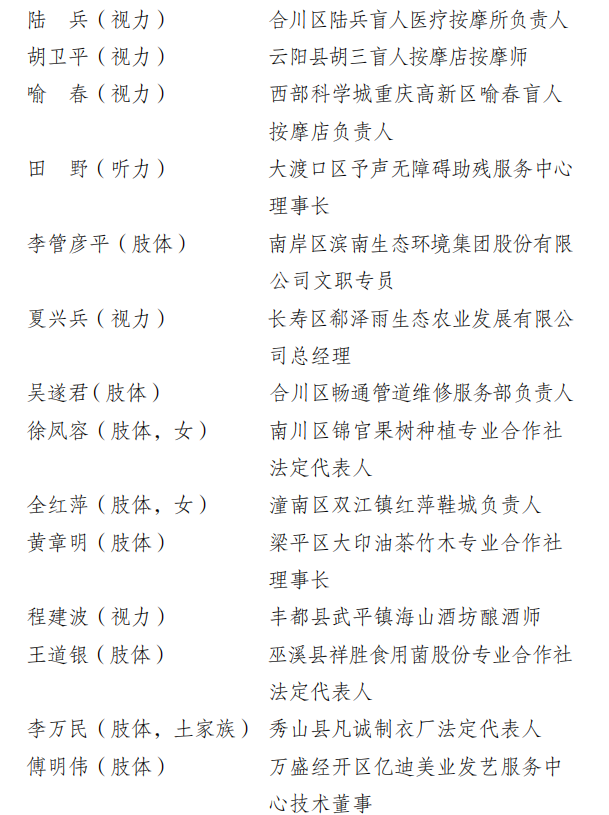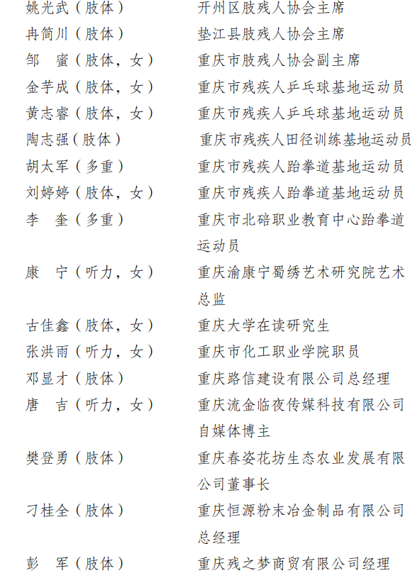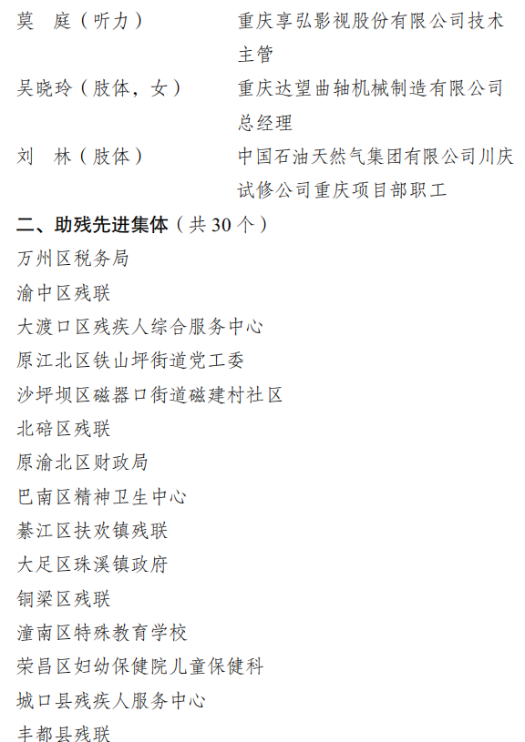 12月8日,重庆市残联发布消息,重庆市自强模范暨助残先进集体和先进个人名单已发布。
