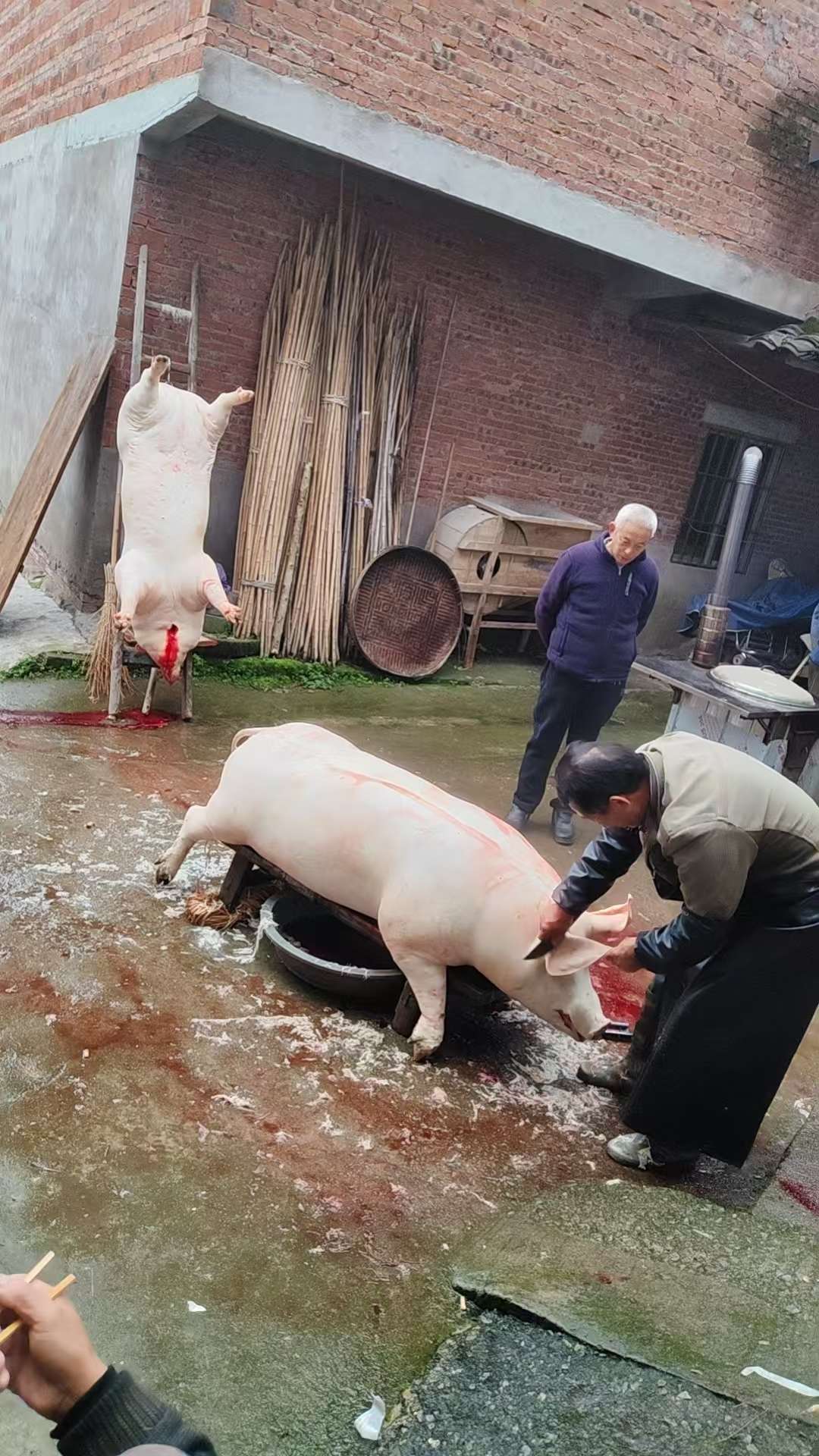 真有实力啊 宰两头猪