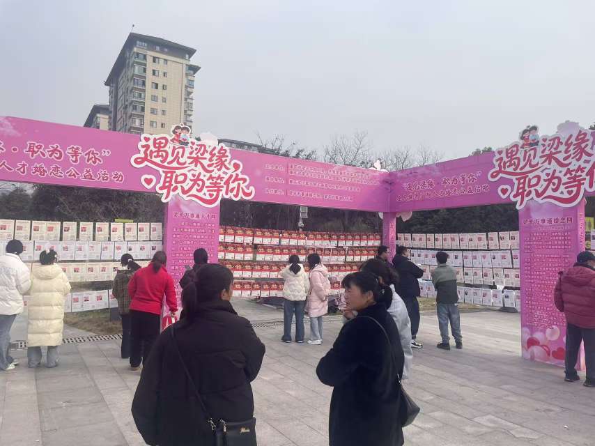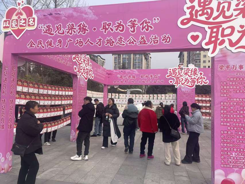 今天在全民健身广场偶遇了“遇见梁缘·职为等你”公益相亲活动,粉色的拱门和满墙的资料卡,氛围感直接拉满~好多人在认真翻看资料,希望大家都能在这里遇见对的人,收获甜甜的缘分呀!
