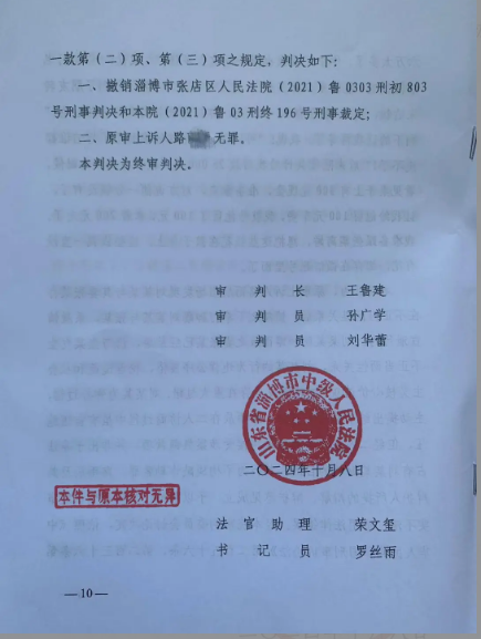 2022年3月28日,淄博市中级人民法院二审裁定驳回上诉,维持原判。