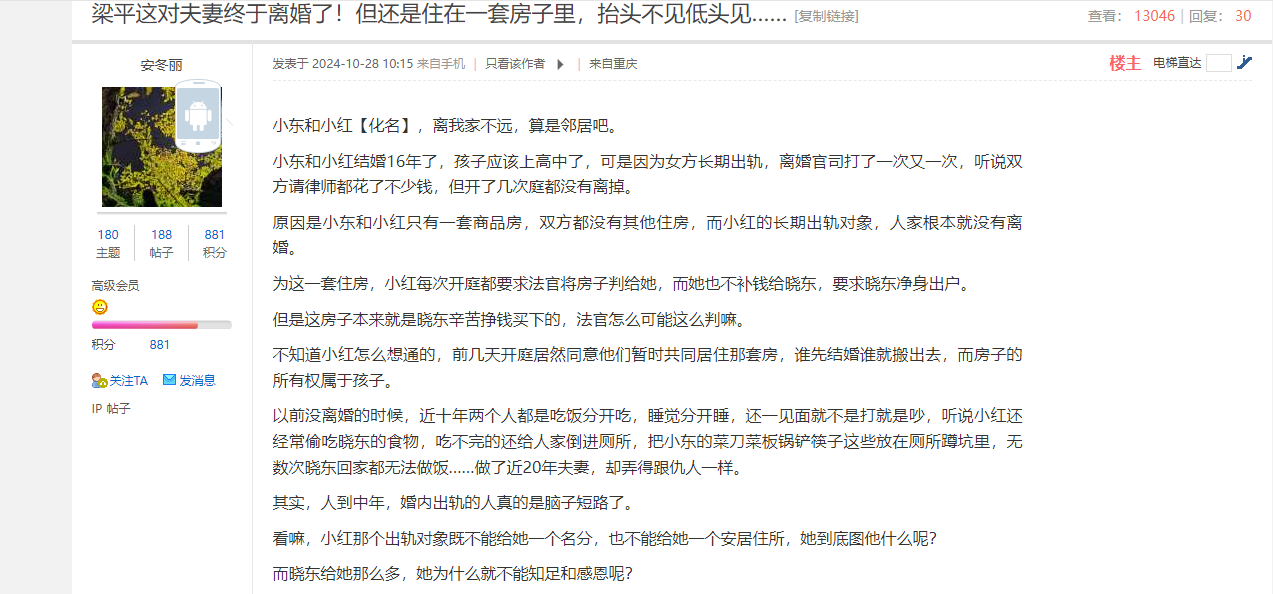 梁平这对结婚16年的夫妻离婚快两年了,他们现状如何?