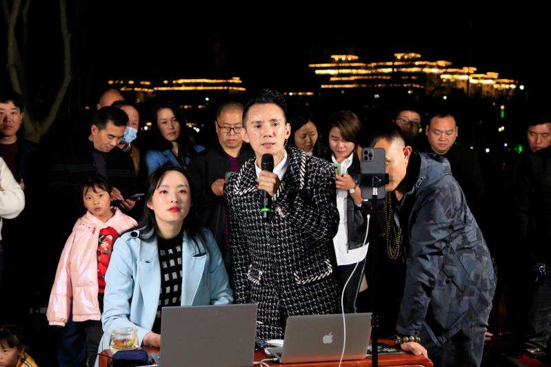 今晚双桂湖边看热闹的人真不少,原来雨禾在搞现场表演!