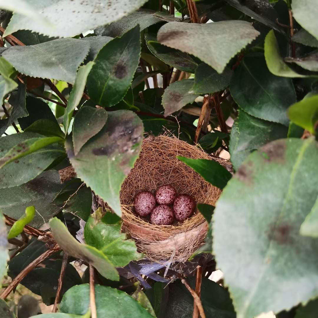我种的花有鸟儿来筑巢害下蛋了!我要等它孵出小鸟
