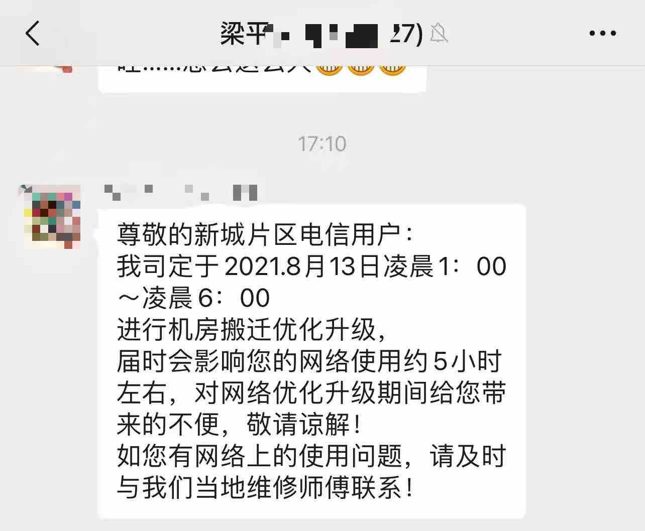 今天在一个群里看到的,电信机房搬迁,8月13日凌晨1点-6点,新城可能会停网五个小时左右,到时候没得网,新城的夜猫子们莫以为是手机问题,把手机砸了哈!